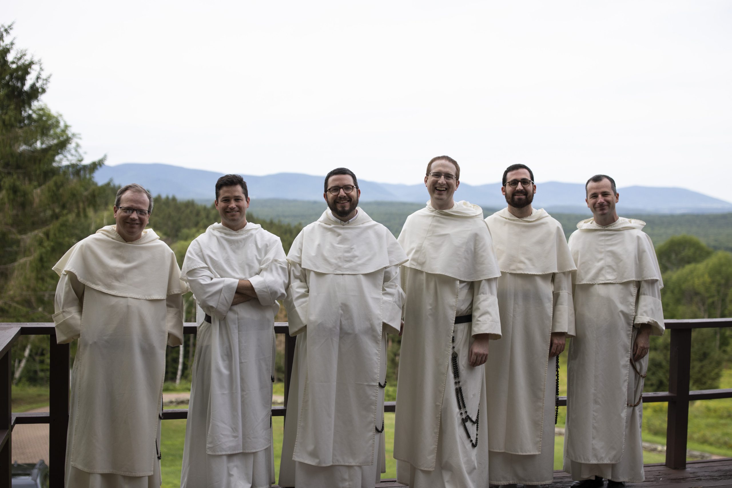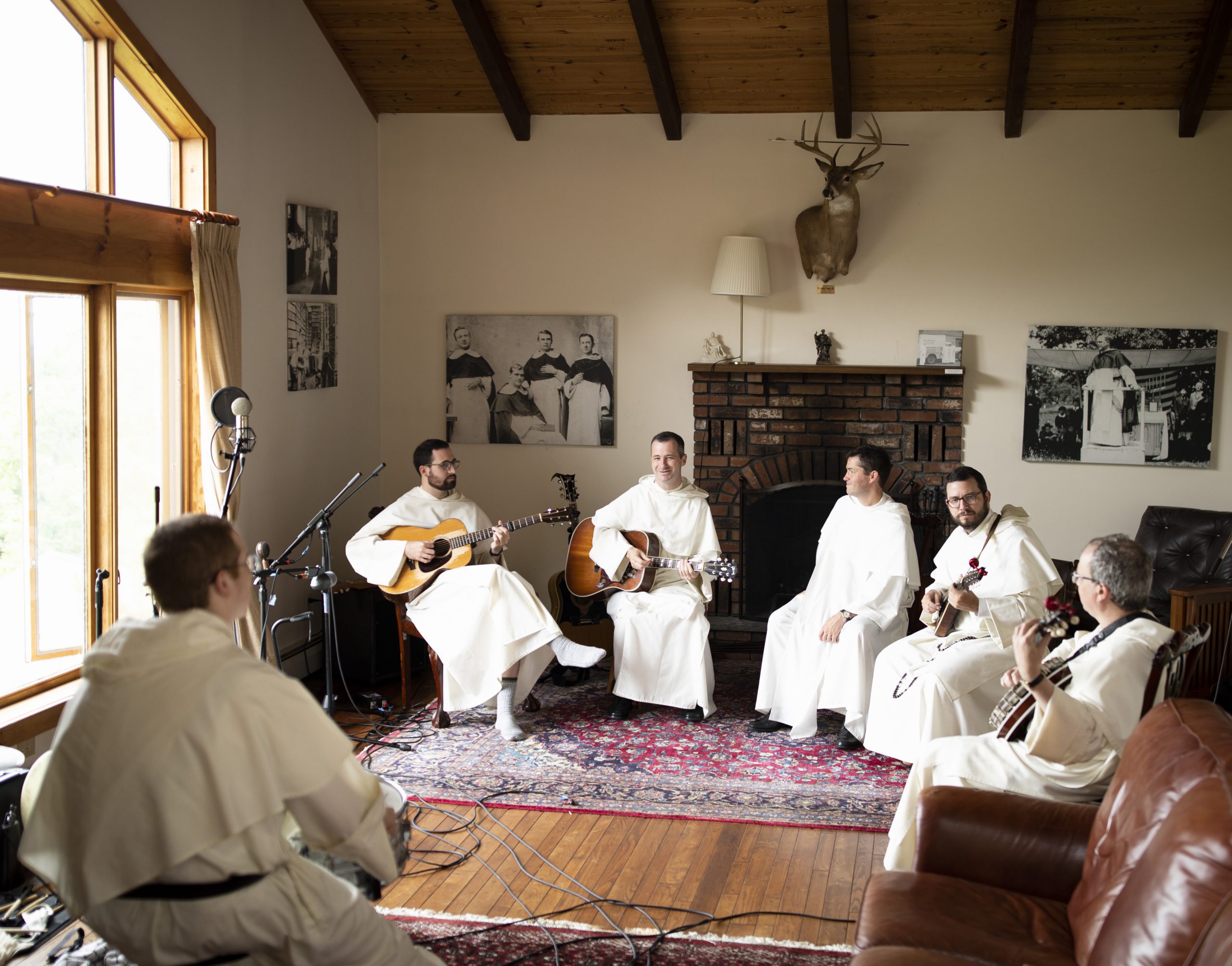 The Hillbilly Thomists who recorded Living for the Other Side, (left to right) Fr. Thomas Joseph White, OP, Fr. Jonah Teller, OP, Fr. Austin Litke, OP, Fr. Joseph Hagan, OP, Fr. Peter Gautsch, OP, and Fr. Justin Bolger, OP (Photo courtesy of Paul Padgett)